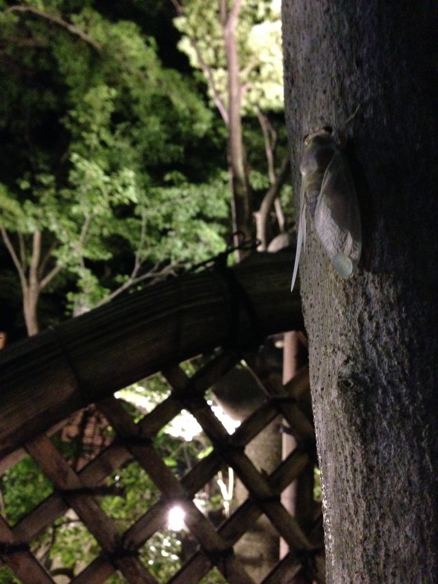 間もない蝉が必死に木をよじ登る姿がありました。